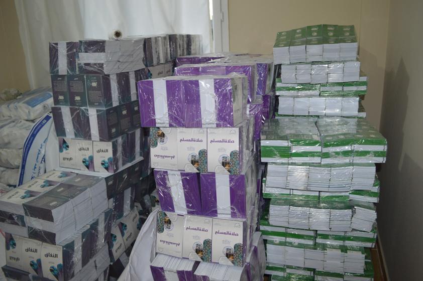 كما وزع المكتب عشرات الألاف من الكتب والمطويات الإسلامية، منها 100 ألف نسخة من كتيب (70 مسألة في الصيام) ومئات الكتب الأخرى مثل: (ما لا يسع المؤمن جهله - التفسير الميسر - الفقه الميسر - الرحيق المختوم)، وغيرها، وذلك في كل من سوريا وتركيا.