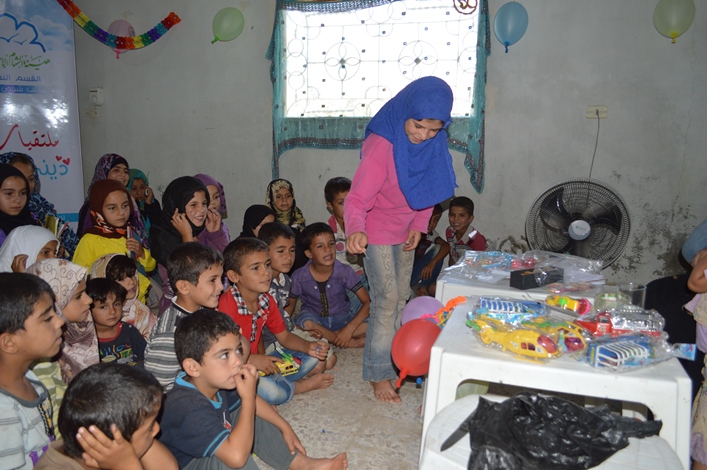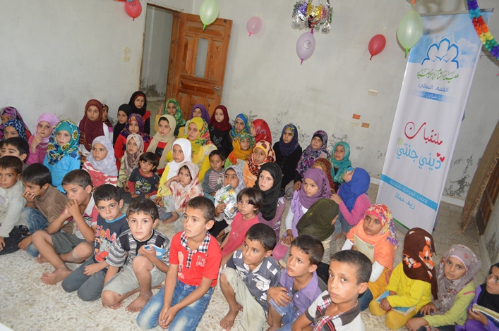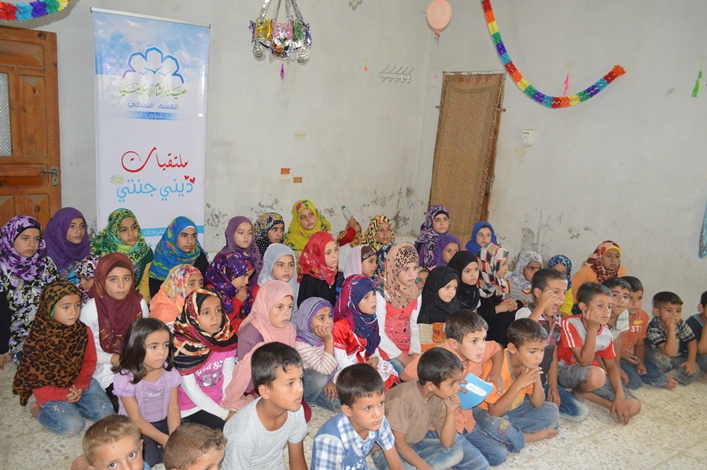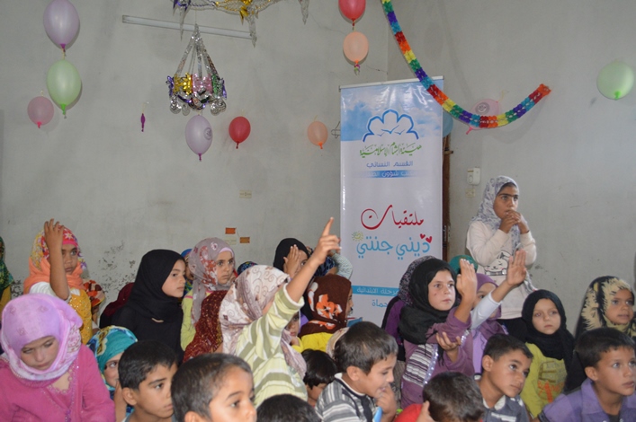 استمرارا لمشروع ملتقيات (ديني جنتي) التي ينفذها مكتب الطفل بالقسم النسائي بهيئة الشام الاسلامية ، التي تهدف لتعزيز القيم الإسلامية في نفوس الأطفال، والمساهمة في تنشئتهم تربويا وإيمانياً، ورفع معنوياتهم في ظل الأزمة والتشرد.